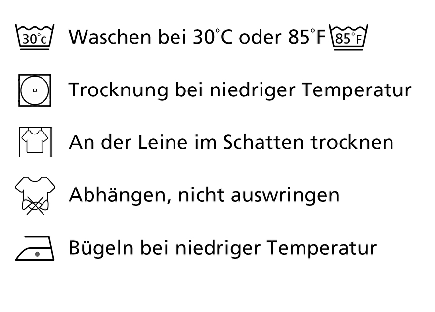 Unten am Bezug befindet sich ein Reißverschluss. Die Kissenbezüge sind waschbar (siehe Pflegeetikett auf der Innenseite), jedoch bei niedriger Temperatur.