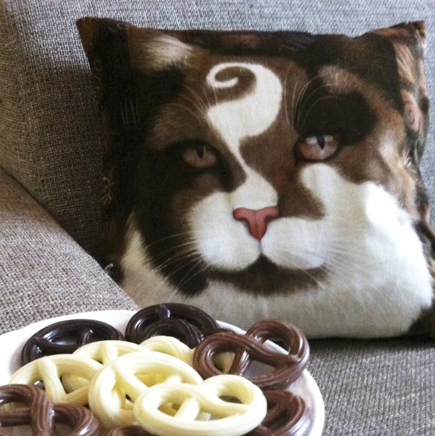 It is also possible to make a cushion with a portrait of your own cat on it. Look under the heading: 'Your own Pet'.