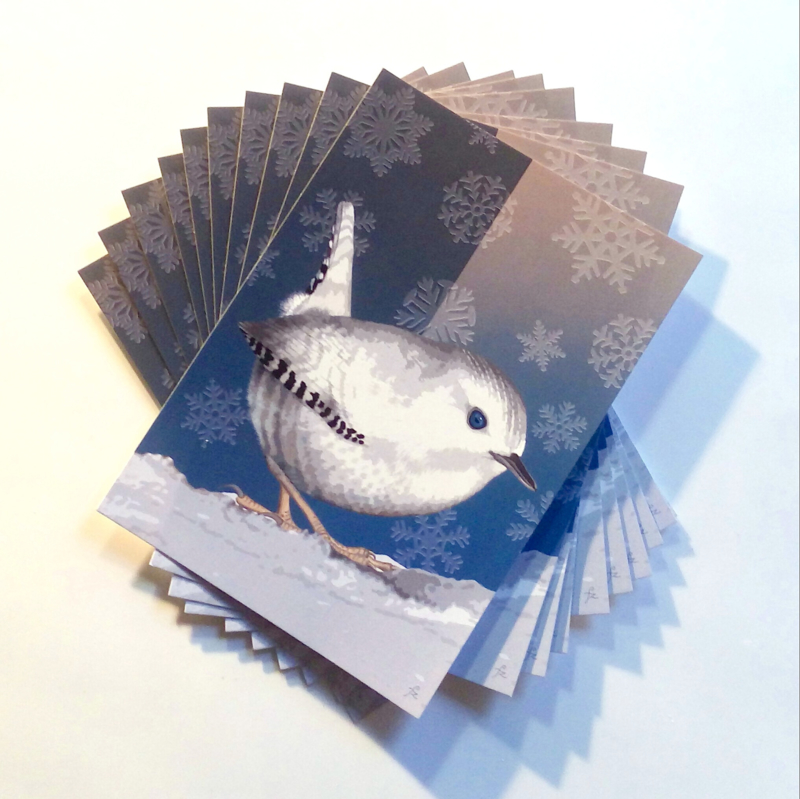 Bird cushion SNOW WREN cotton/velvet pillow cover