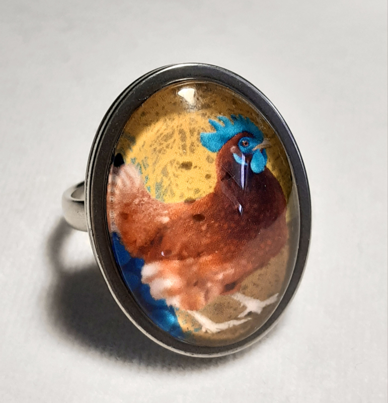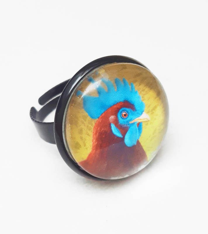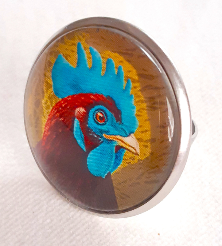 Cabochon ring bird BLUE COMB