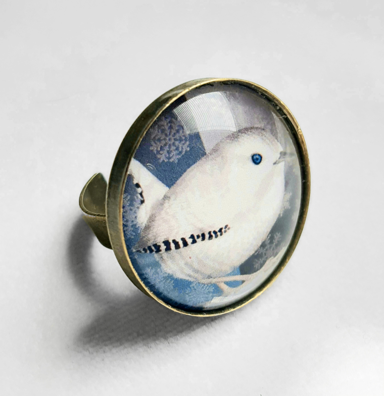 Anello cabochon ucello RE DE NEVE