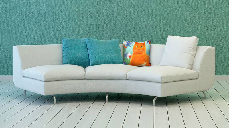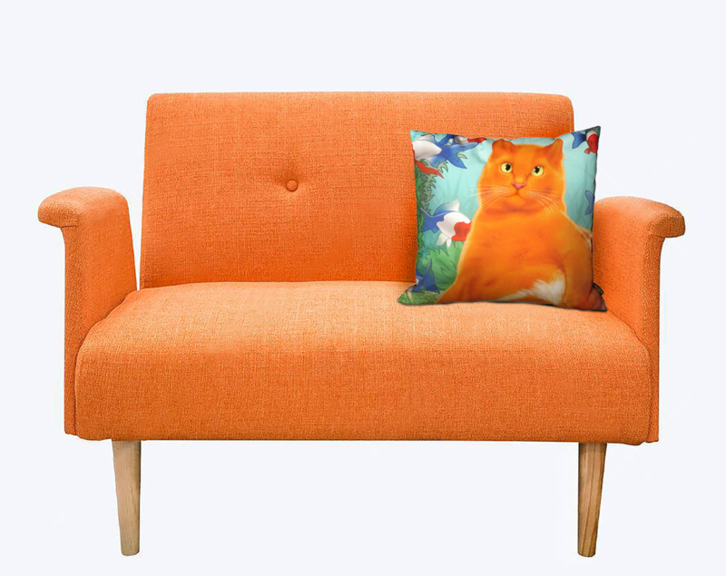 Orange-aqua sammet kuddfodral Katt ORANGE KUNG